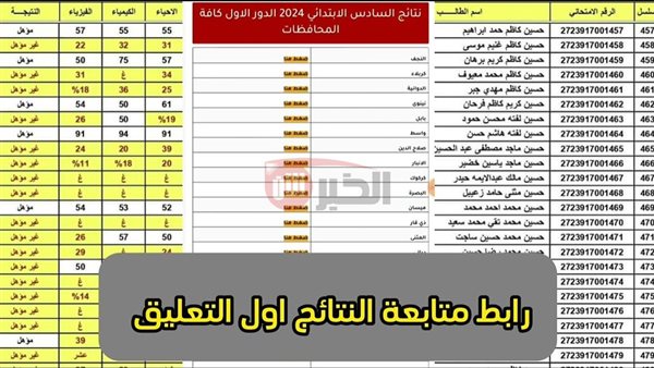نتائج السادس الابتدائي 2025 الدور الاول pdf