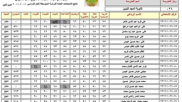 نتائج السادس الابتدائي في الرصافة الثالثة