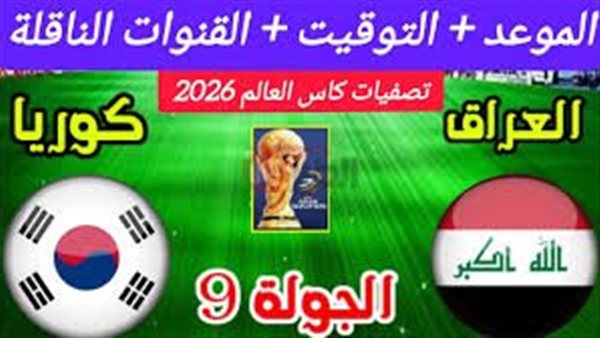 موعد مباراة العراق وكوريا الجنوبية في تصفيات كأس العالم 2026 والقنوات الناقلة