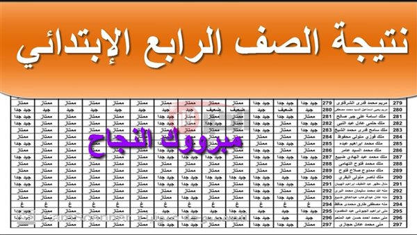 نتيجه الصف الرابع الابتدائي الترم الثاني