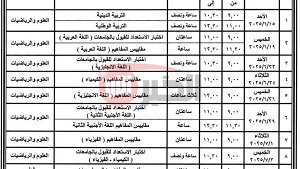 - الخميس 3-7-2025 امتحان الكيمياء والجغرافيا.