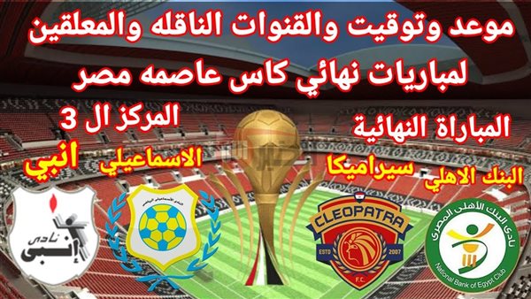 نهائي كاس عاصمه مصر 2025 بين البنك الاهلي وسيراميكا كليوباترا والقنوات الناقلة