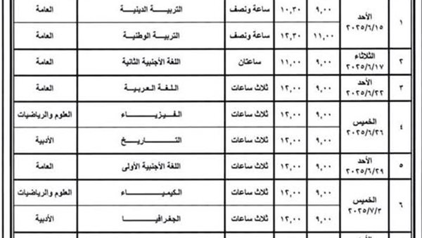 جدول امتحانات الثانويه العامه