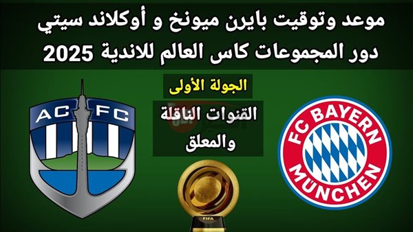 القنوات الناقله لمباراه بايرن ميونخ وأكولاند سيتي في كأس العالم للاندية والمعلق
