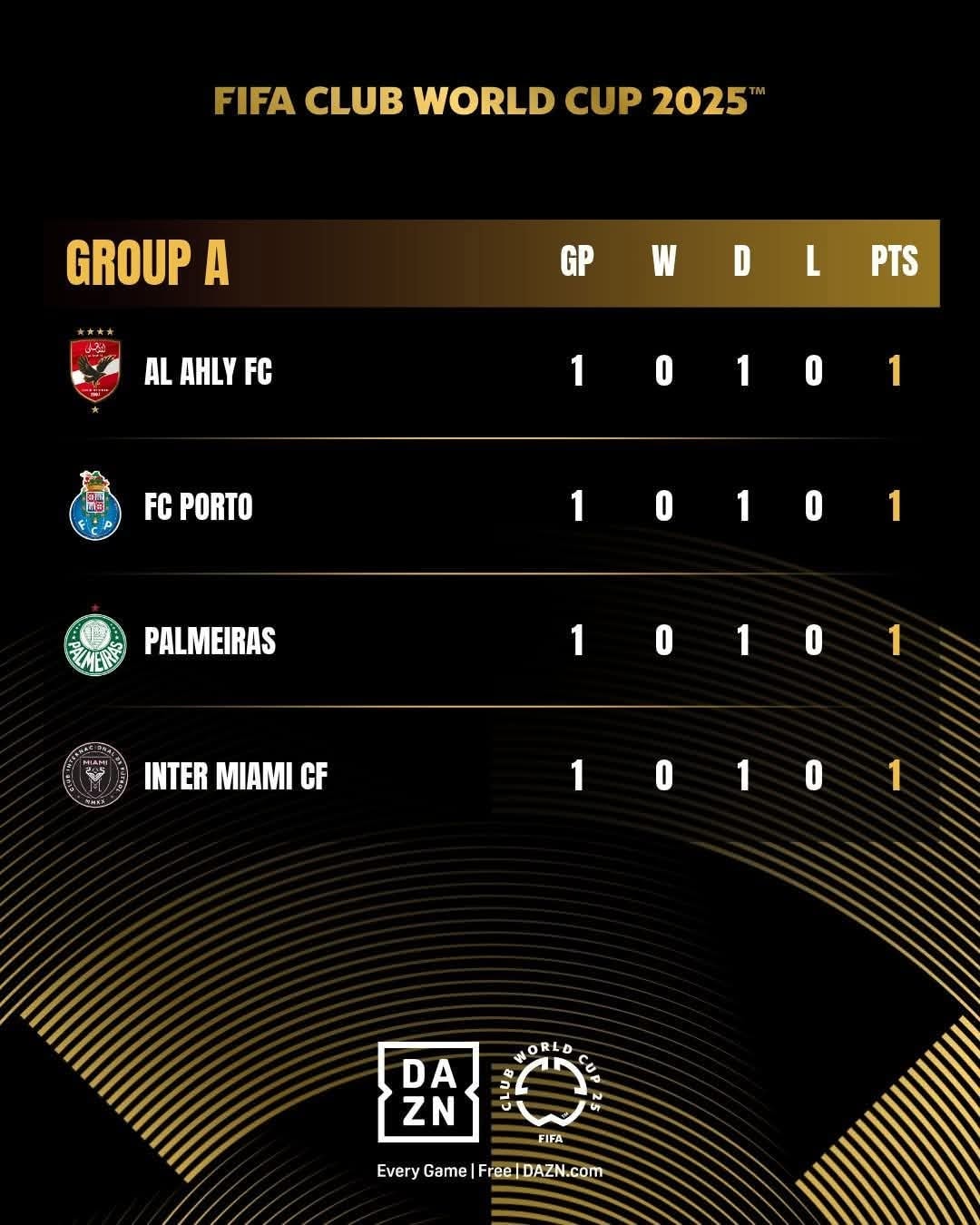 - إنتر ميامي برصيد 1 نقطة وحيدة.