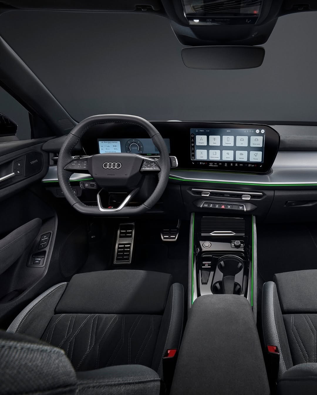 - التصميم الداخلي هو تصميم أودي النموذجي للجيل الجديد، ولكن بدون شاشة اختيارية للراكب.
