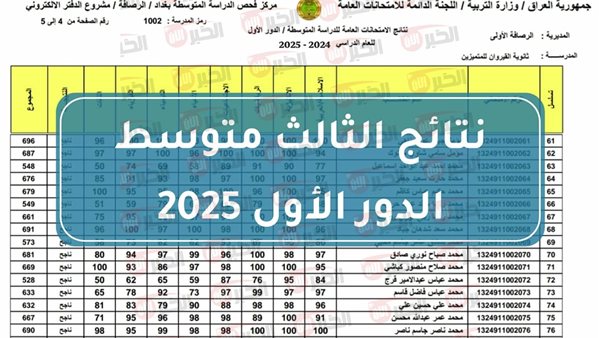 رابط نتائج ثالث متوسط 2025 الدور الاول موقع نتائجنا PDF لجميع المحافظات