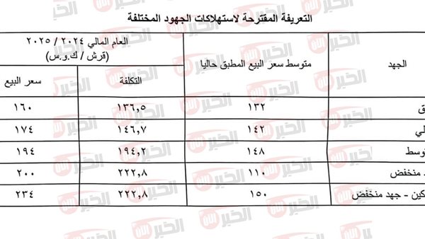 تتجه الحكومة إلى فرض زيادة جديدة على اسعار شرائح الكهرباء المنزلي والتجاري بنسب تتراوح بين 10% و15% على شرائح الاستهلاك المختلفة، ويأتي ذلك في إطار الالتراوح بضوابط واحكام صندوق النقد الدولي للحصول على باقي شرائح القرض الذي يُقدّر إجمالًا بنحو 8 مليارات دولار.