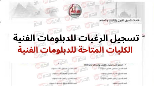 الكليات المتاحة للدبلومات الفنية نظام 3 سنوات و5 سنوات