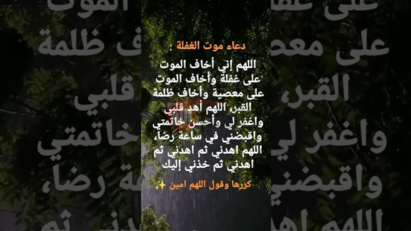 - اللهم إنّا نعوذ بك من غفلة القلب، وشقاوة النفس، وسوء الخاتمة، ونسألك يقظةً في الدنيا، ورحمةً عند الموت، ومغفرةً بعد الرحيل.