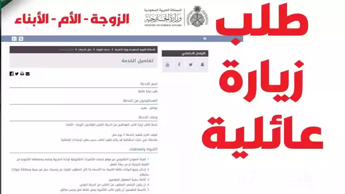 الجدير بالذكر انه يمكنك تقديم طلب زيارة عائلية للمقيمين من وزارة الخارجية السعودية، من خلال إتباع الخطوات التالية: