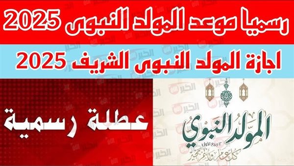 تأتي إجازة المولد النبوي الشريف 2025 ضمن قائمه العطلات الرسمية التي يُعلن عنها مجلس الوزراء كل عام، حيث تم تحديد موعدها بشكل رسمي لمتنح عاملي القطاع العام والخاص يومًا من الراحة احتفالا بذكرى مولد النبي محمد صلى الله عليه وسلم، وتعتبر تلك المناسبة من بين اهم المناسبات الدينية التي تحظى باهتمام واسع وكبير في مختلف المحافظات، وتُمنح فيها اجازه مدفوعة الاجر في اطار حرص الدولة على احياء الشعائر الإسلامية وتمكين المواطنين من الاحتفال بالمولد النبوي الشريف في أجواء اسريه روحانيه مميزه، فدعونا الان خلال موقعنا الاخباري نعرض لكم تفاصيل إجازة المولد النبوي الشريف.