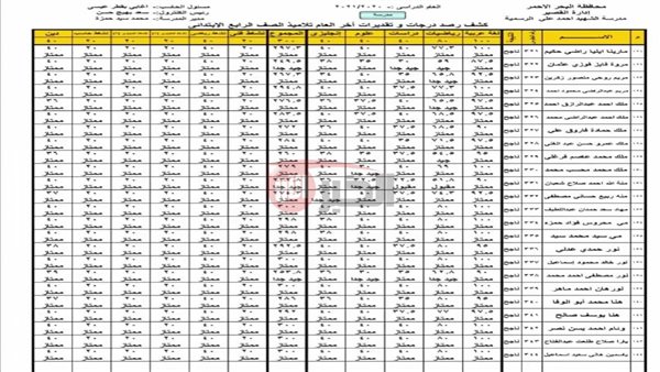 - وتحديد نتيجة الصف الاول الابتدائي.